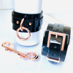 Kinky Diva – High Gloss O-Ring Collar + Leash Black/Rose Gold